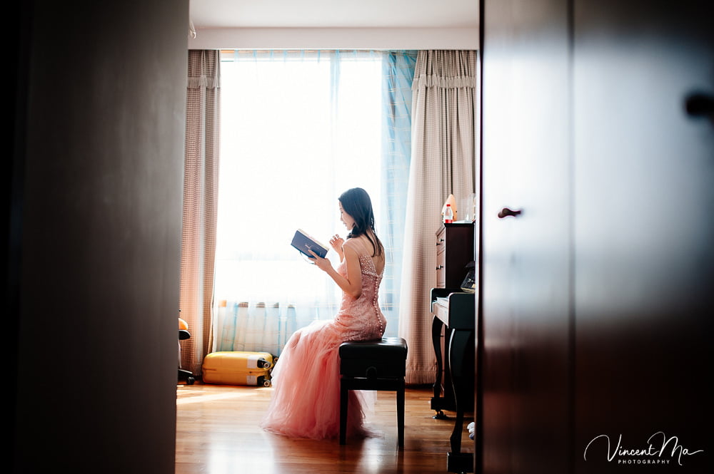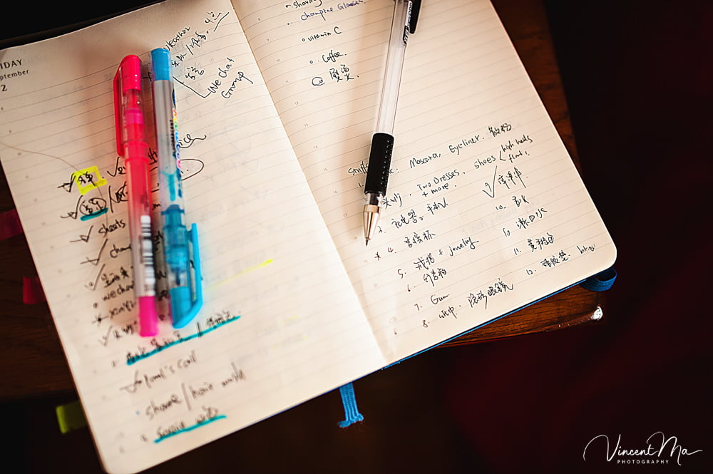 圆满的婚礼离不开新人细致的筹备,妆毕临行前,新娘再一次检查核对要带的物品有没有遗漏。