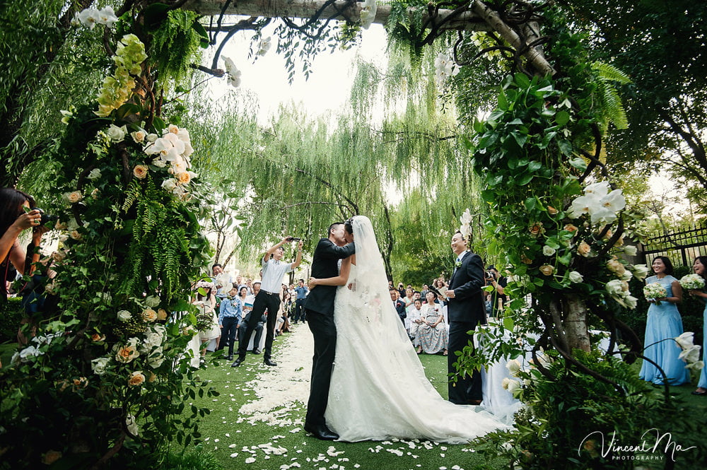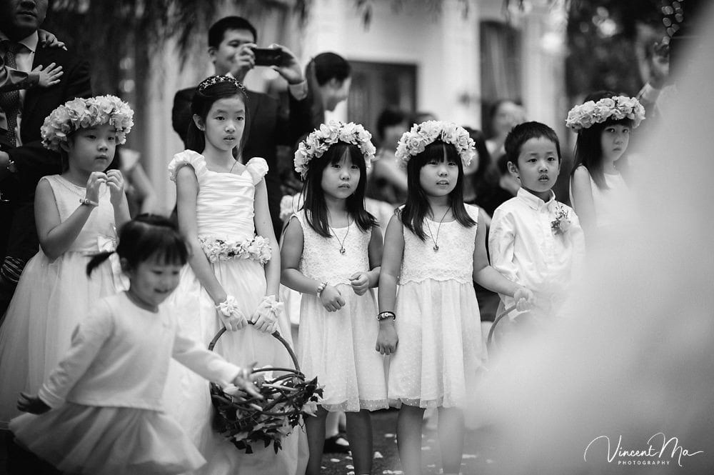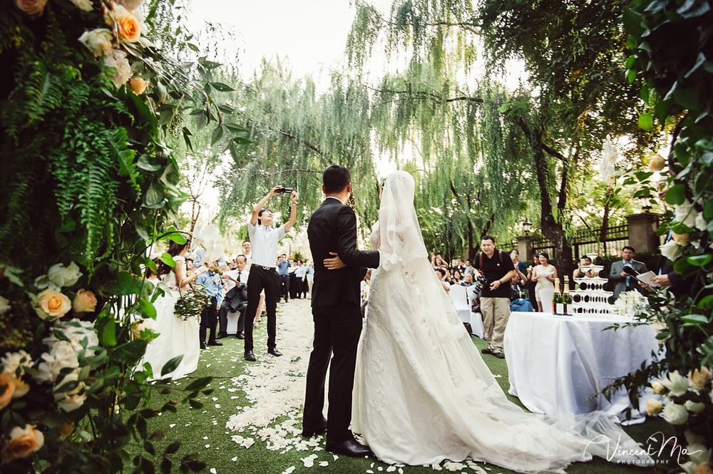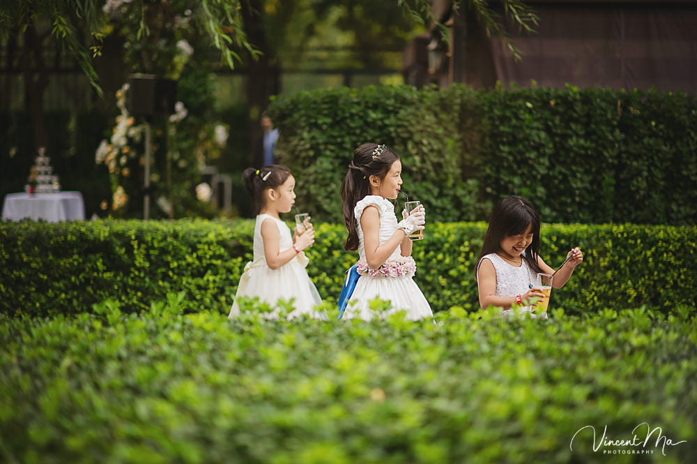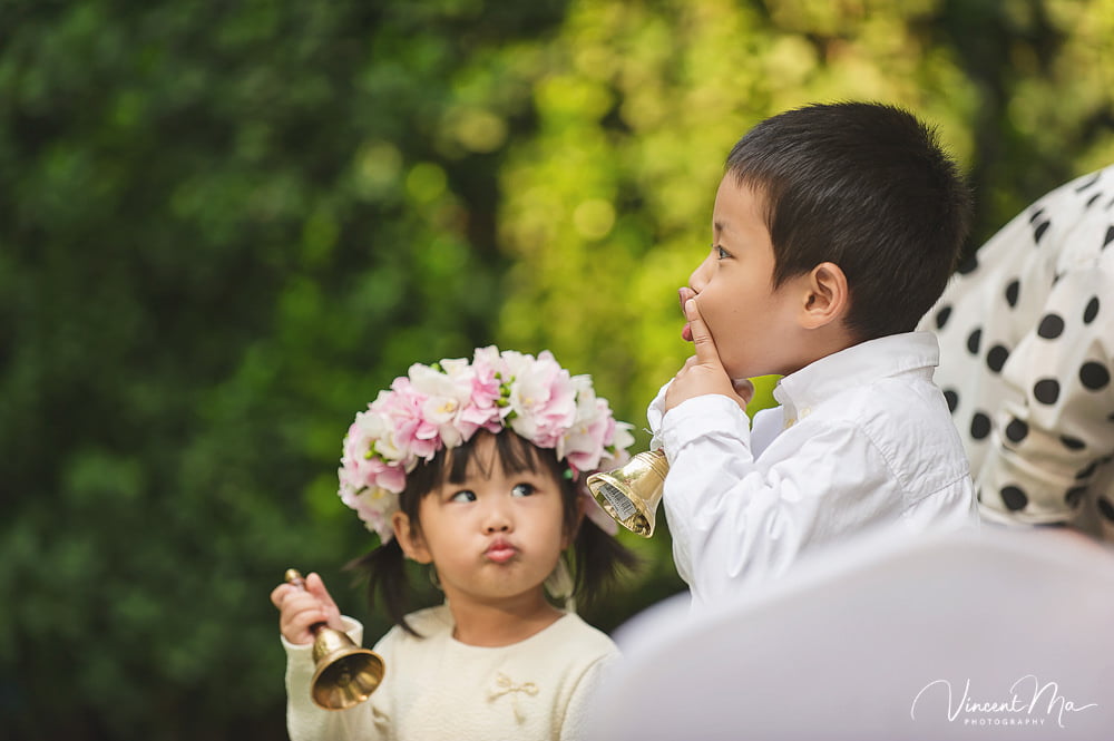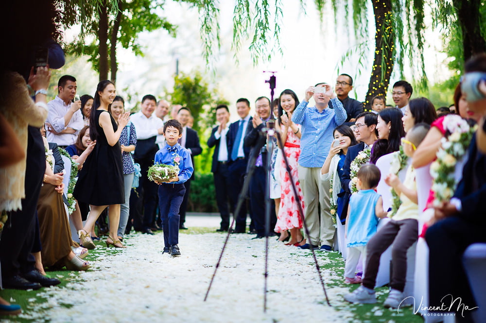 仪式还没进行完,孩子们就把婚礼现场变成自己的游乐园,争先恐后地把花瓣抛向新人,朋友们也加入进来,用花瓣把新人狠狠灌倒,满满都是爱啊!