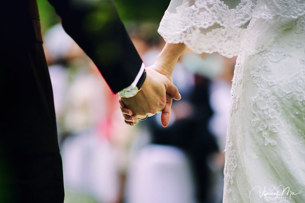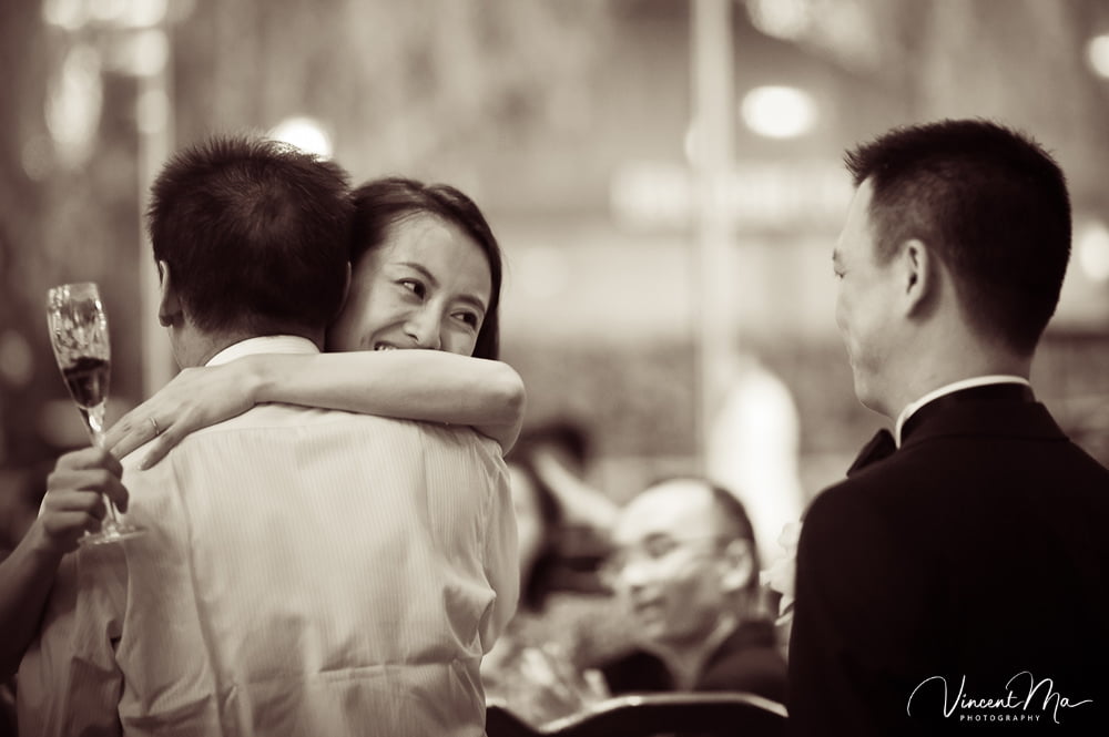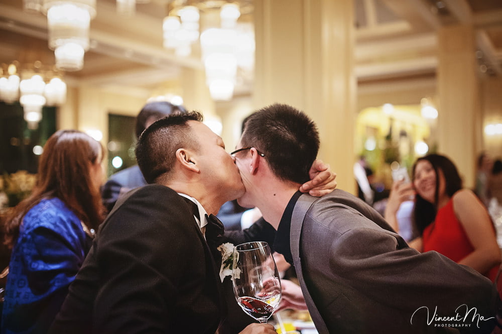仪式前两位新人丝毫没有紧张的情绪,拍着合影俩人就自顾自地打闹起来。